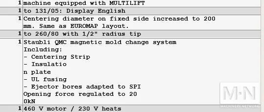 ** SEE PICTURES FOR COMPLETE BUILD SHEET ** ALSO AVAILABLE ARBURG 2-COLOR MACHINE 550 AND 350 TON |