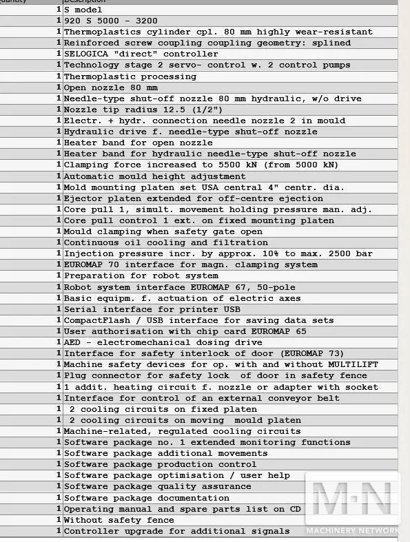 OverviewDescription550 TON 51 OZ ARBURG MODEL 920S-5000-3200 INJECTION MOLDING MACHINE MFG 2015 SELOGICA DIRECT CONTROL