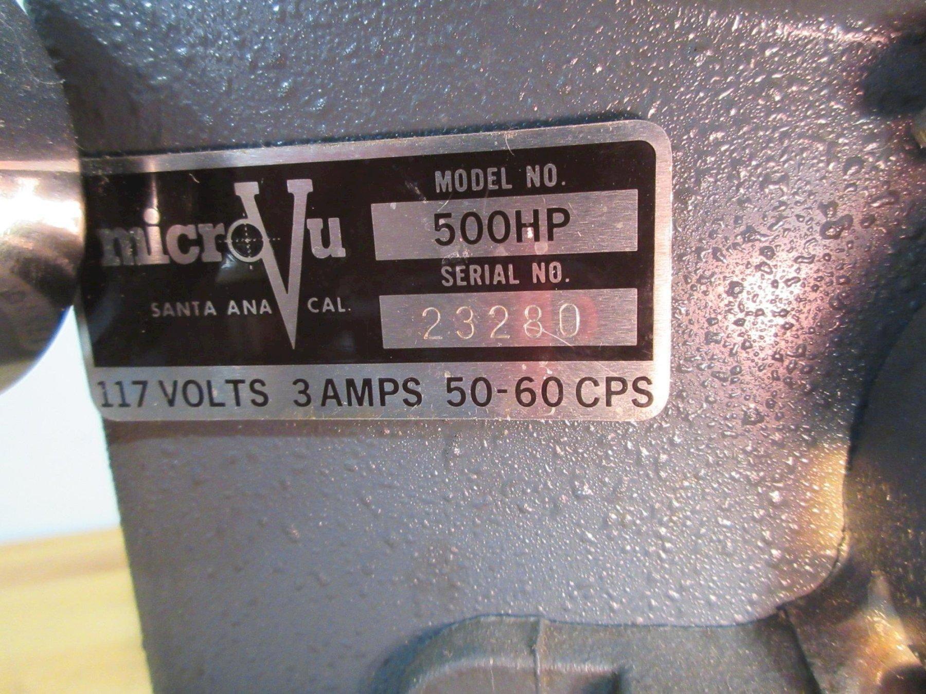 View Auction Item at: https://www.machinesused.com/lots/50003">, Lot 55: MicroVu Model 500HP 12" Benchtop Optical Comparator with Stage Travel Indicators Electrics: 110V Single Phase, "Bulbs Work" Manufacturer: MicroVu Model: 500HP Main Unit Approx Weight: 0.00 lbs Main Unit Dimensions (in inches): Length: 29.00" Width: 18.00" Height: 24.00" Specs: Seller Company: United Standards Lab Seller Contact: Machinesused.com April Multishop Phone: (763) 745-1166 Item Location: Machinesused.com, 2410 Niagara Lane N., Plymouth, MN 55447 Location Contact: Machinesused.com April Multishop Phone: (763) 745-1166 Inspection Date & Time: By Appointment Normal Business Hours Monday-Friday Removal Dates and Times: This item must be removed between Wednesday, April 29, 2026 and Friday, May 8, 2026 |