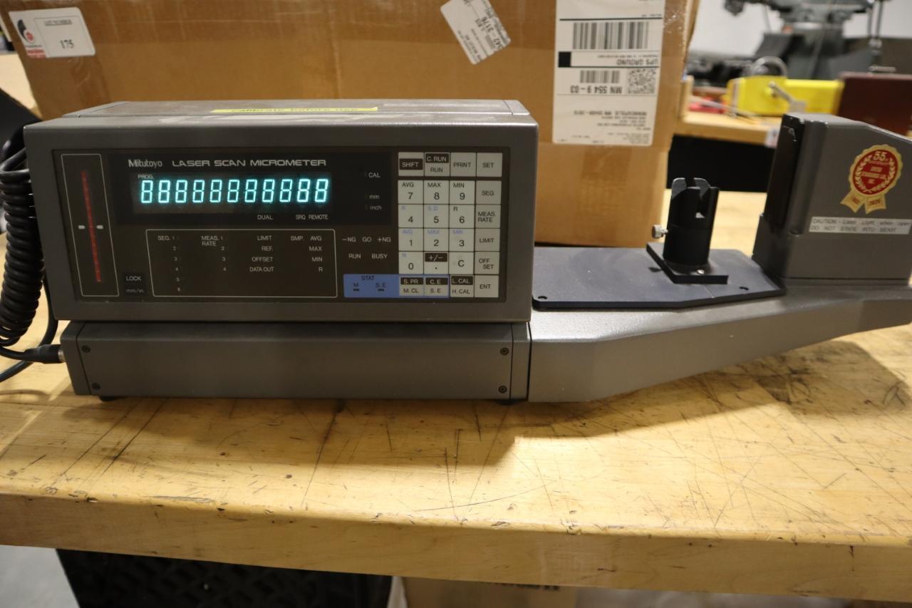 View Auction Item at: https://www.machinesused.com/lots/50135">, Lot 175: Mitutoyo LSM-9602 Laser Scan Micrometer Description: The Mitutoyo LSM‑9602 Laser Scan Micrometer is a high‑accuracy, non‑contact measuring system designed for continuous diameter and profile measurement of small precision parts. Using a high‑speed rotating laser beam, the LSM‑9602 delivers reliable, repeatable measurement results even on moving or delicate components. Manufacturer: Mitutoyo Model: LSM-9602 Serial Number: BM120181 Main Unit Approx Weight: 0.00 lbs Main Unit Dimensions (in inches): Length: 24.00" Width: 5.50" Height: 8.00" Seller Company: United Standards Lab Seller Contact: Machinesused.com April Multishop Phone: (763) 745-1166 Item Location: Machinesused.com, 2410 Niagara Lane N., Plymouth, MN 55447 Location Contact: Machinesused.com April Multishop Phone: (763) 745-1166 Inspection Date & Time: By Appointment Normal Business Hours Monday-Friday Removal Dates and Times: This item must be removed between Tuesday, April 28, 2026 and Friday, May 8, 2026 |