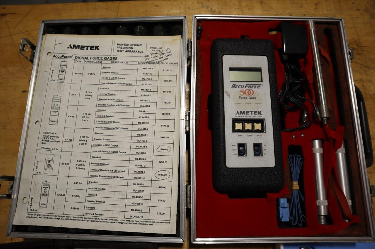 View Auction Item at: https://www.machinesused.com/lots/50136">, Lot 176: Force Gages: (3) Dial Type Push-Pull Gages and (1) Electronic Equipped With: Chatillon DPP, Desk DL100 w Case , Ametek AccuForce 500 Force Gauge w Case Manufacturer: assorted Model: assorted Main Unit Approx Weight: 0.00 lbs Main Unit Dimensions (in inches): Length: 0.00" Width: 0.00" Height: 0.00" Seller Company: United Standards Lab Seller Contact: Machinesused.com April Multishop Phone: (763) 745-1166 Item Location: Machinesused.com, 2410 Niagara Lane N., Plymouth, MN 55447 Location Contact: Machinesused.com April Multishop Phone: (763) 745-1166 Inspection Date & Time: By Appointment Normal Business Hours Monday-Friday Removal Dates and Times: This item must be removed between Tuesday, April 28, 2026 and Friday, May 8, 2026 |
