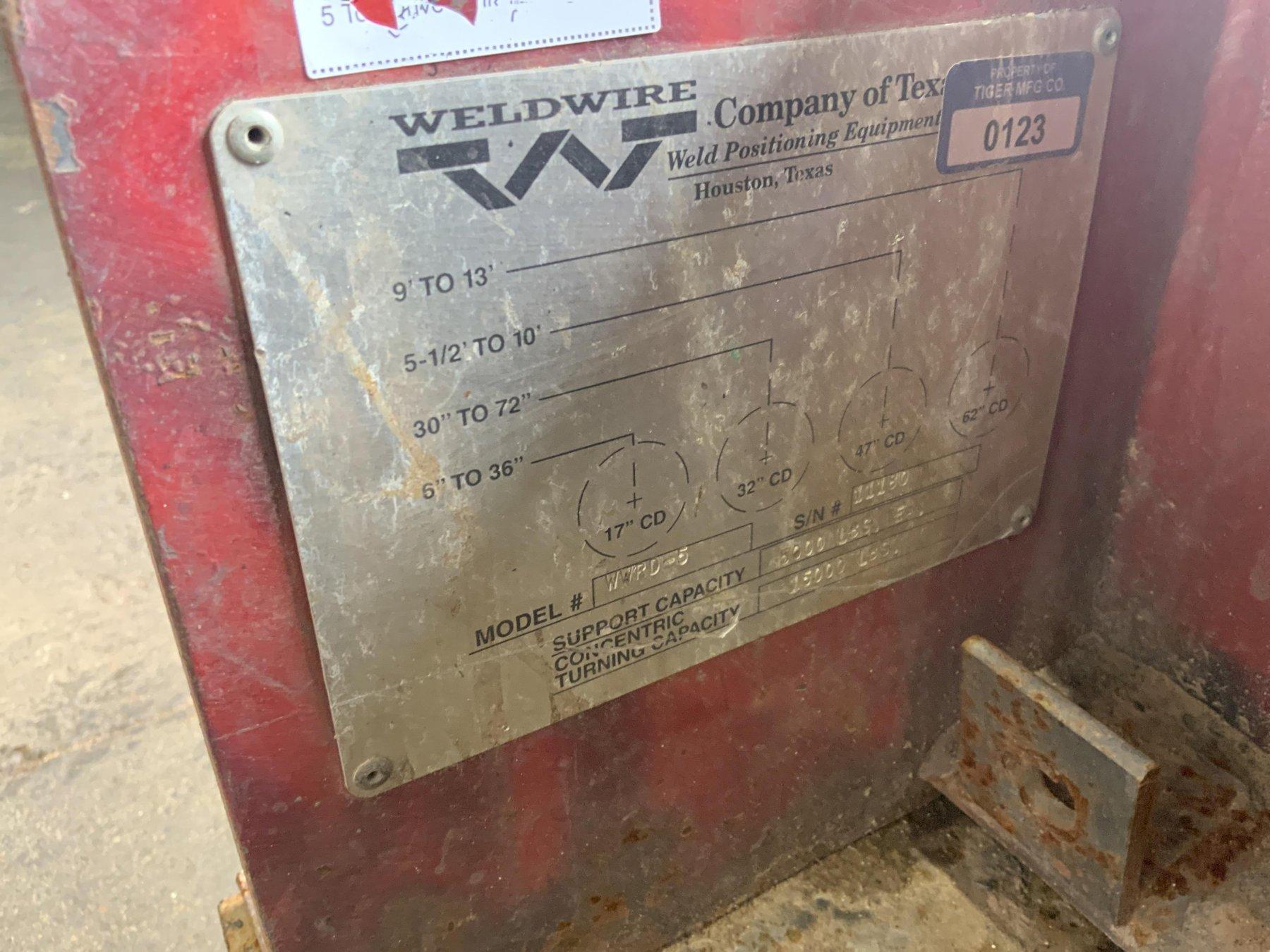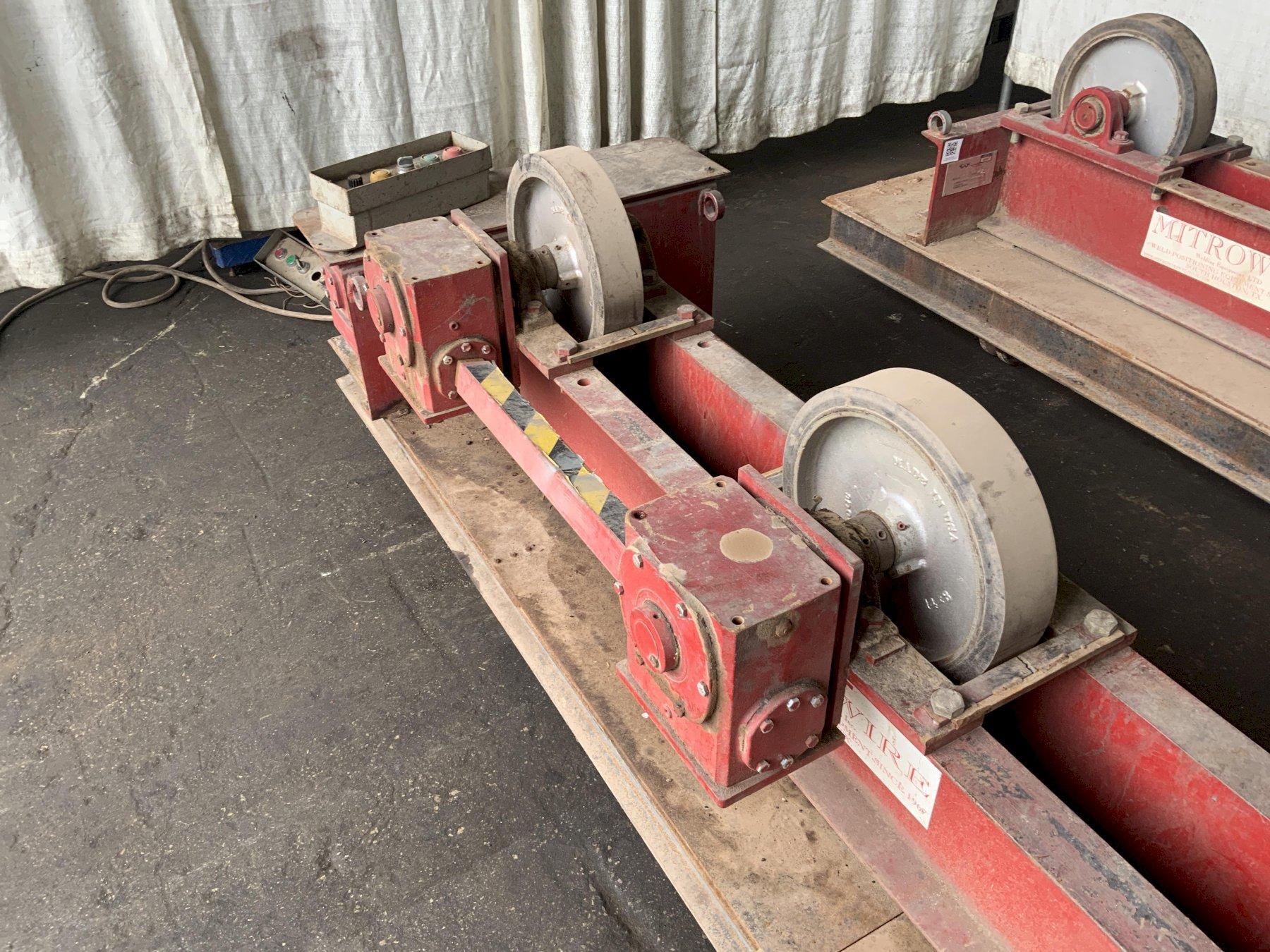 SERIAL ............................ 12354 MODEL DRIVE ROLLS ................. WWRD-5 MODEL IDLER ROLLS ................. WWRI -5 LOAD CAPACITY PER PIECE ........... 2.5 TON LOAD CAPACITY 1 DRIVE & 1 IDLER ... 10,000 LB TURNING CAPACITY .................. 15,000 LBS TURNING DIAMETER .................. 6" TO 13' WHEELS (RUBBER) ................... 14" X 3" FACE SPEED .VARIABLE ................... 0 TO 45 IPM FORWARD & REVERSING ............... YES RAPID TRAVERS ..................... YES PHASE ............................. 1 VOLTAGE ........................... 110 MOTOR HORSEPOWER .................. 1/2 |