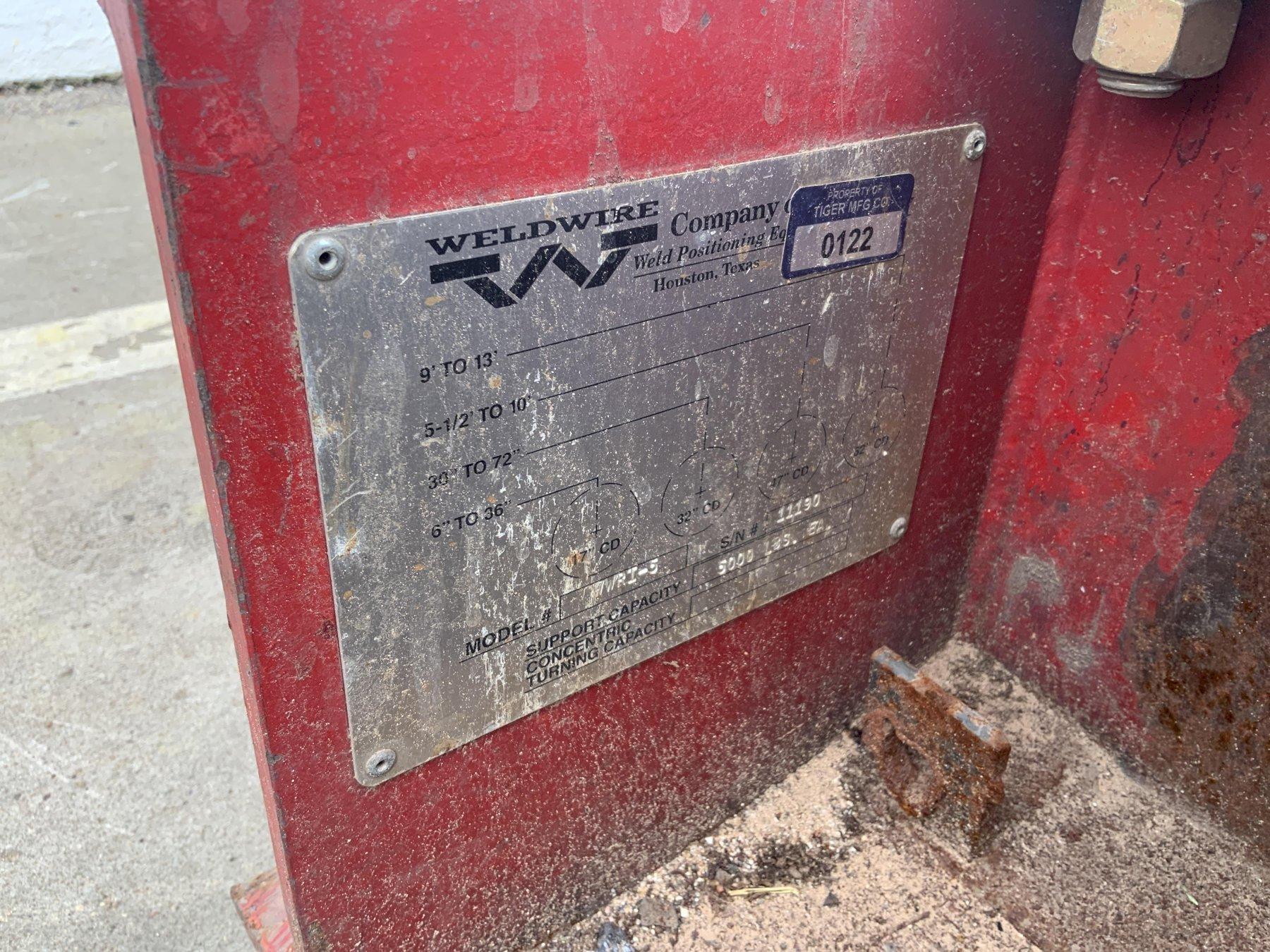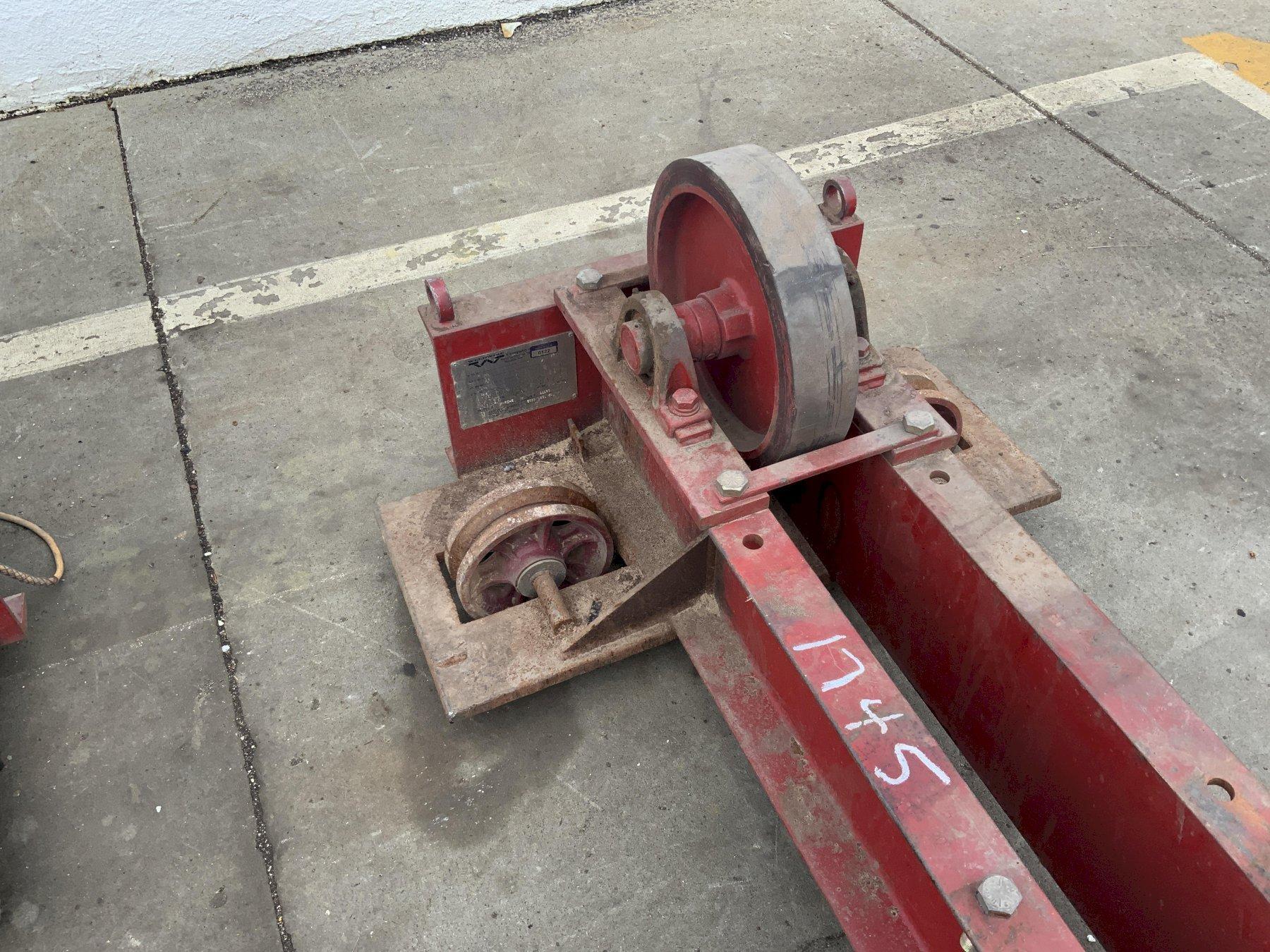 DRIVE SERIAL ...................... 11179 IDLER SERIAL ...................... 11190 MODEL DRIVE ROLLS ................. WWRD-5 MODEL IDLER ROLLS ................. WWRI -5 LOAD CAPACITY PER PIECE ........... 2.5 TON LOAD CAPACITY 1 DRIVE & 1 IDLER ... 10,000 LB TURNING CAPACITY .................. 15,000 LBS TURNING DIAMETER .................. 6" TO 13' WHEELS (RUBBER) ................... 14" X 3" FACE SPEED .VARIABLE ................... 0 TO 45 IPM FORWARD & REVERSING ............... YES RAPID TRAVERS ..................... YES PHASE ............................. 1 VOLTAGE ........................... 110 MOTOR HORSEPOWER .................. 1/2 |