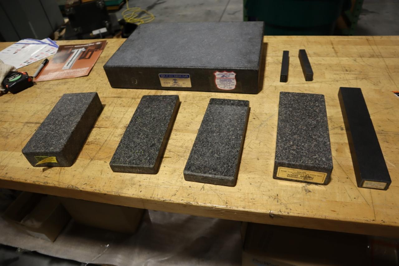 View Auction Item at: https://www.machinesused.com/lots/50161">, Lot 199: Granite Surface Plate / Granite Blocks Equipped With: 1x Rock of Ages Surface Place - 18x12x3.25, Assorted Surface Blocks Manufacturer: Rock of Ages Model: Generic Main Unit Approx Weight: 0.00 lbs Main Unit Dimensions (in inches): Length: 18.00" Width: 12.00" Height: 3.25" Seller Company: United Standards Lab Seller Contact: Machinesused.com April Multishop Phone: (763) 745-1166 Item Location: Machinesused.com, 2410 Niagara Lane N., Plymouth, MN 55447 Location Contact: Machinesused.com April Multishop Phone: (763) 745-1166 Inspection Date & Time: By Appointment Normal Business Hours Monday-Friday Removal Dates and Times: This item must be removed between Wednesday, April 29, 2026 and Friday, May 8, 2026 |