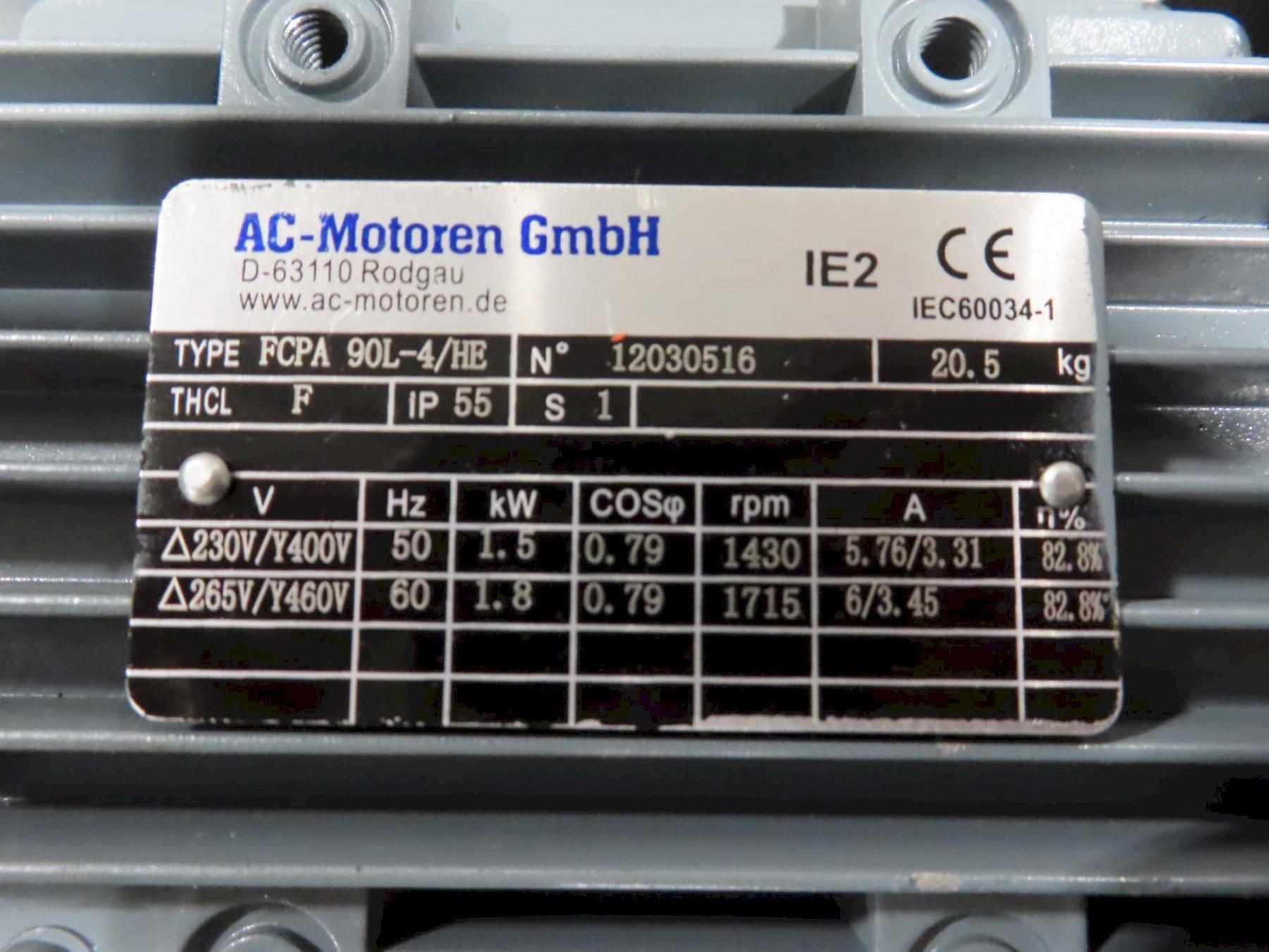 View Auction Item at: https://www.machinesused.com/lots/50211">, Lot 224: AC Motoren GmbH Motor - FCPA 90L-4/HE & Scherzinger Pump - 351/251 FA/M1.5 Equipped With: 1.8 kW, 1715RPM Electrics: 230/460v 3Phase Manufacturer: AC Motoren GmbH Model: FCPA 90L-4/HE Main Unit Approx Weight: 0.00 lbs Main Unit Dimensions (in inches): Length: 0.00" Width: 0.00" Height: 0.00" Seller Company: John Sloan Seller Contact: John Sloan Phone: (903) 452-3077 Item Location: John Sloan, 14353 77th St NE, Otsego, MN 55330 Location Contact: John Sloan Phone: (903) 452-3077 Inspection Date & Time: By Appointment Normal Business Hours Monday-Friday Removal Dates and Times: This item must be removed between Wednesday, April 29, 2026 and Friday, May 8, 2026 |