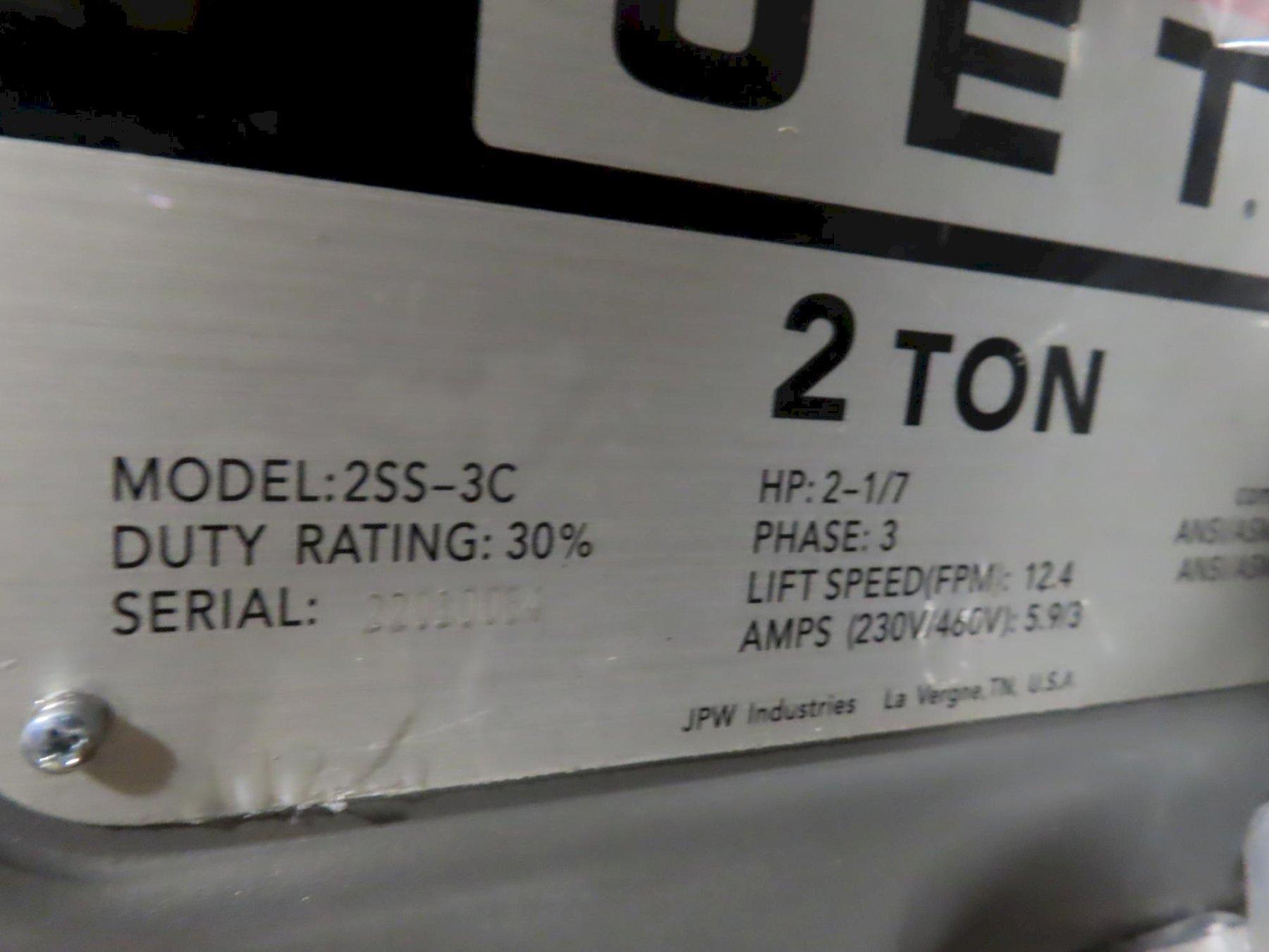 View Auction Item at: https://www.machinesused.com/lots/50186">, Lot 226: Jet 2SS-3C-15 (Model 231500) 2 Ton Electric Chain Hoist (New in Box) Equipped With: 2 Ton Lifting Capacity, 15' Lifting Height, 12.4 FPM Lifting Speed, 2 HP Motor Electrics: 230/460 Volt, 3 Phase Manufacturer: Jet Model: 2SS-3C-15 Year: 2022 Serial Number: 22010054 Main Unit Approx Weight: 200.00 lbs Main Unit Dimensions (in inches): Length: 0.00" Width: 0.00" Height: 0.00" Seller Company: John Sloan Seller Contact: Machinesused.com April Multishop Phone: (763) 745-1166 Item Location: John Sloan, 2410 Niagara Lane N, Plymouth, MN 55447 Location Contact: Machinesused.com April Multishop Phone: (763) 745-1166 Inspection Date & Time: By Appointment Normal Business Hours Monday-Friday Removal Dates and Times: This item must be removed between Wednesday, April 29, 2026 and Friday, May 8, 2026 |