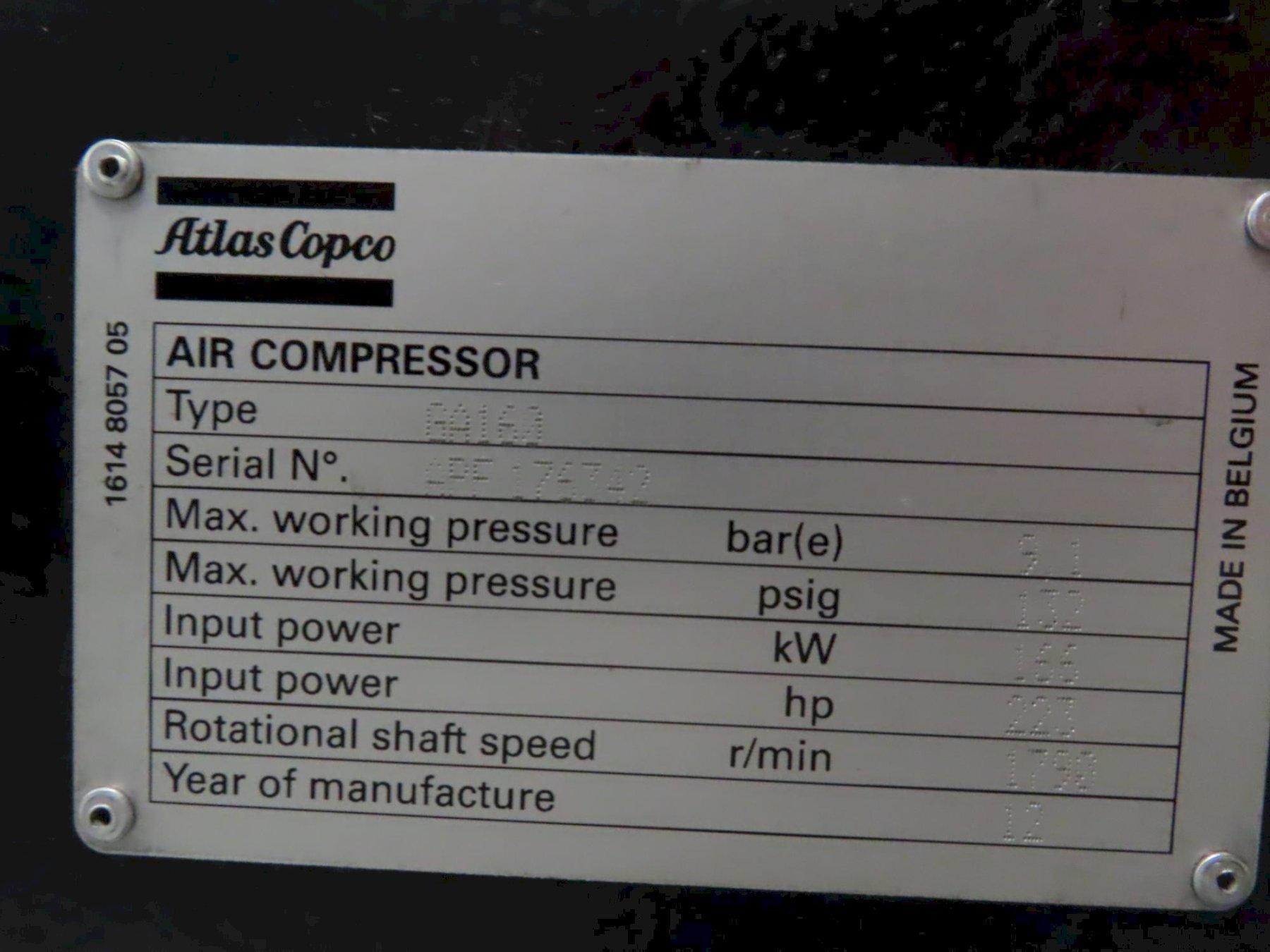 View Auction Item at: https://www.machinesused.com/lots/50288">, Lot 317: Atlas Copco GA 160 VSD 233 HP Variable Speed Drive Rotary Air Compressor Equipped With: Door Keys Electrics: See Photos Manufacturer: Atlas Copco Model: GA 160 VSD Year: 2012 Serial Number: APF 176342 Main Unit Approx Weight: 0.00 lbs Main Unit Dimensions (in inches): Length: 132.00" Width: 65.00" Height: 93.00" Seller Company: Cummins Power Generation Seller Contact: Machinesused.com April Multishop Phone: (763) 745-1166 Item Location: Cummins Power Generation, 2410 Niagara Lane N, Plymouth, MN 55447 Location Contact: Machinesused.com April Multishop Phone: (763) 745-1166 Inspection Date & Time: By Appointment Normal Business Hours Monday-Friday Dock Door: 14' x 14' Ground Level Door Loading Dock: Large Paved Lot - Ground and Truck Level Docks Removal Dates and Times: This item must be removed between Wednesday, April 29, 2026 and Friday, May 8, 2026 |