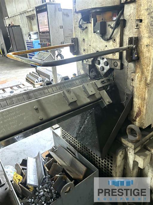 Punch Tonnage Capacity 72 Tons Shear Tonnage Capacity 200 Tons Min. Angle Size, A-36 1-3/16" x 1-3/16" x 1/8" Max. Angle Size, A-36 6-3/8" x 6-3/8" x 5/8" Max. Angle Size, Grade 50 .... 6" x 6" x 5/8" Max. Diameter, Standard Tooling 1-3/16" Dia. Thru Thickness, A-36 1-3/16" - 5/8" Dia. Thru Thickness, Grade 50 1-1/16" - 5/8" Min. Length Of Section 33-1/2" Max. Speed Of Angle 131 FPM Gauge Line Positioning Speed 52 FPM Equipped With: Ficep Pegaso CNC Control (2) Fixed Mounted Hydraulic Punching Units Hydraulic Shearing Unit 38-Station Marking Unit Infeed Transfer Table for 40' Material Rotary Loader Infeed Conveyor For 60' Material (Note: Conveyor is longer than loading transfer) 23' Special Outfeed "Shutter" Conveyor NOTE: Inspect In Plant Under Power |