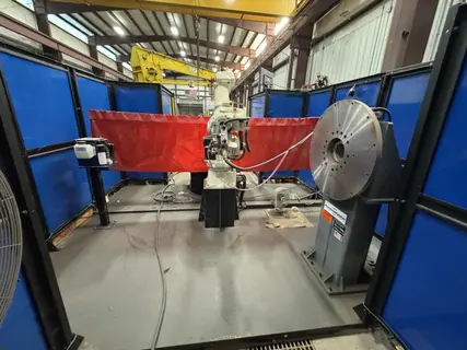 All specifications are assumed to be correct but must be confirmed by the purchasing entity.,Axes & Motion Number of Axes: 6 All specifications are assumed to be correct but must be confirmed by the purchasing entity.,Axis Motion Range Speed J1 (Base Rotation) ±170° 225°/sec J2 (Lower Arm) -155° to +100° 205°/sec J3 (Upper Arm) -170° to +260° 255°/sec J4 (Wrist Swing) ±180° 450°/sec J5 (Wrist Bend) -50° to +230° 430°/sec J6 (Wrist Twist) ±360° 630°/sec Wrist Capacity All specifications are assumed to be correct but must be confirmed by the purchasing entity.,J4 Allowable Torque: 17.6 N·m J5 Allowable Torque: 17.6 N·m J6 Allowable Torque: 7.8 N·m All specifications are assumed to be correct but must be confirmed by the purchasing entity.,Allowable Moment of Inertia J4: 0.43 kg·m² J5: 0.43 kg·m² J6: 0.09 kg·m² All specifications are assumed to be correct but must be confirmed by the purchasing entity.,Additional Robot Features Individual servo shock sensors on each axis Vibration restraining control for smoother welding IP54 rated wrist axes (dust and splash protection) CAN communication architecture Floor, wall, or ceiling mounting capable OTC Daihen FD21 Robot Controller All specifications are assumed to be correct but must be confirmed by the purchasing entity.,Controller Specifications Power Supply: 3-phase 480V / 240V ±10-15% Frequency: 50/60 Hz Integrated Transformer: Yes Memory Capacity: 100,000,000 steps (PTP instruction) Maximum Task Programs: 9,999 All specifications are assumed to be correct but must be confirmed by the purchasing entity.,Dimensions: 17.3″ W × 21.34″ D × 25.2″ H Weight: ~119 lb All specifications are assumed to be correct but must be confirmed by the purchasing entity.,Environmental Operating Temperature: 32°F – 113°F (0–45°C) Humidity: 20–80% RH (non-condensing) All specifications are assumed to be correct but must be confirmed by the purchasing entity.,Connectivity USB external memory slot (controller and pendant) Network capability External axis control support Multi-robot support capability All specifications are assumed to be correct but must be confirmed by the purchasing entity.,OTC Daihen FD21 Teach Pendant Display: 5.7″ touch screen Resolution: 640 × 480 Color: 65,536 colors Backlight: LED Dimensions: 6.42″ W × 2.95″ D × 11.69″ H Weight: 1.8 lb Cable Length: 26.25 ft All specifications are assumed to be correct but must be confirmed by the purchasing entity.,Controls Axis jog keys Jog dial Emergency stop Enable switch USB memory slot All specifications are assumed to be correct but must be confirmed by the purchasing entity.,Features Touchscreen programming On-screen numeric keypad Multi-screen navigation Weld spatter-resistant screen border Welding Power Supply All specifications are assumed to be correct but must be confirmed by the purchasing entity.,Power Source: OTC Daihen Welbee P502L All specifications are assumed to be correct but must be confirmed by the purchasing entity.,Power Specs Input Voltage: 460V 3-Phase Rated Input Power: 25.4 kVA / 23.1 kW Input Current: 31.7 A All specifications are assumed to be correct but must be confirmed by the purchasing entity.,Maximum Output Current: 500A (DC) 400A (Pulse) Output Current Range: 30 – 500 A Output Voltage Range: 12 – 39 V Duty Cycle 60% at DC 80% at Pulse 100% TIG/Stick All specifications are assumed to be correct but must be confirmed by the purchasing entity.,Welding Processes MIG (GMAW) Flux-core (FCAW) TIG (GTAW) Stick (SMAW) All specifications are assumed to be correct but must be confirmed by the purchasing entity.,Dimensions / Weight Size: 15.6″ × 28.0″ × 31.9″ Weight: 178.5 lb All specifications are assumed to be correct but must be confirmed by the purchasing entity.,Additional Features Pulse waveform control CBT-EX low spatter mode High-speed welding mode USB port Network / tablet monitoring capability All specifications are assumed to be correct but must be confirmed by the purchasing entity.,Welding Torch Package Torch Type: 500A Water-Cooled Torch All specifications are assumed to be correct but must be confirmed by the purchasing entity.,Specifications Max Current: 500A (CO₂) / 400A (MAG) All specifications are assumed to be correct but must be confirmed by the purchasing entity.,Duty Cycle: 70% (CO₂) 60% (MAG) All specifications are assumed to be correct but must be confirmed by the purchasing entity.,Wire Sizes .045″ (standard) .052″ 1/16″ All specifications are assumed to be correct but must be confirmed by the purchasing entity.,Cooling Water-cooled All specifications are assumed to be correct but must be confirmed by the purchasing entity.,Welding Cell / System Configuration System Model: Capital Robotics Fusion Arc 180L All specifications are assumed to be correct but must be confirmed by the purchasing entity.,Included Equipment Fusion Arc 180L weld cell with extended base (2) 60″ diameter tabletop stations (2) 2500 kg capacity welding positioners Dual auxiliary axis control kit Safety light curtain system with 36″ wall extensions Rear entry safety door 500A water-cooled welding kit Robot integration and software All specifications are assumed to be correct but must be confirmed by the purchasing entity.,Software Pitch welding software Copy shift function Multi-pass welding capability All specifications are assumed to be correct but must be confirmed by the purchasing entity.,Automation Features Dual-station welding operation Integrated robot + welder interface Arc seam tracking capability (optional) Torch cleaning station compatibility Touch sensing capability All specifications are assumed to be correct but must be confirmed by the purchasing entity.,Utilities Required Electrical: 460V 3-Phase Compressed Air: Required for safety doors Shielding Gas: MIG welding supply All specifications are assumed to be correct but must be confirmed by the purchasing entity. |