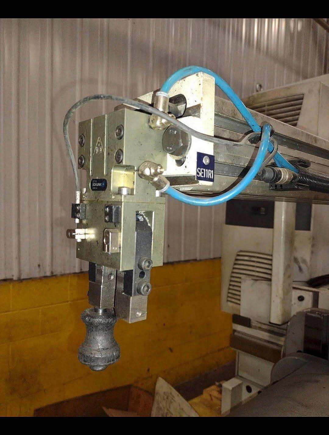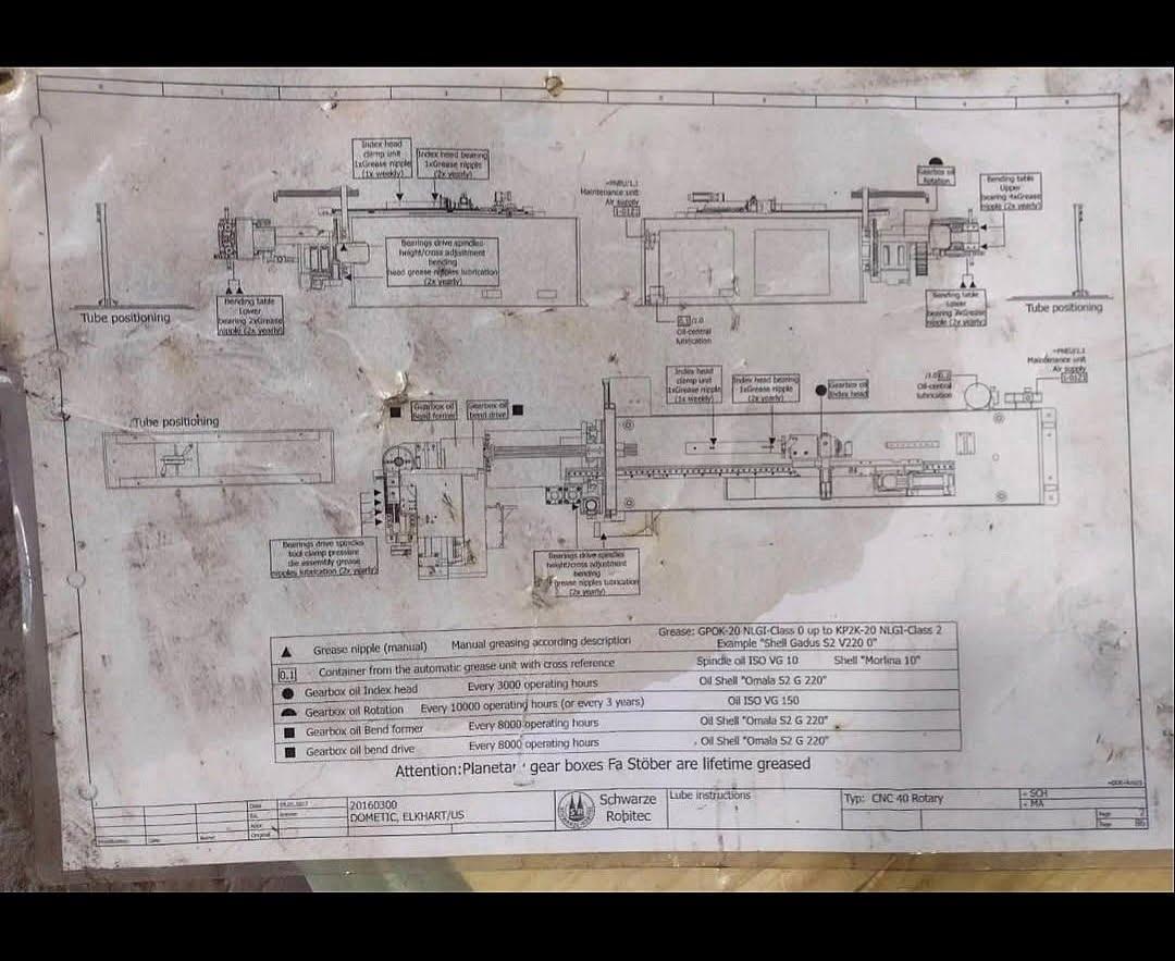 All specifications are assumed to be correct but must be confirmed by the purchasing entity.,–SPECIFICATIONS– All specifications are assumed to be correct but must be confirmed by the purchasing entity.,Tube Capacity: 1.25 collet Max centerline radius: 5.9” Max bending rotation: 185 degrees Bending rotation: left to right Max. bending capacity of the machine: tube OD x wall thickness Standard steel: 40 x 2 mm 1.57 x 0.08 In Stainless steel: 32 x 1,5 mm 1.26 x 0.06 In Max. modulus of section: approx. 2,2 cm³ 0.9 In³ Max. tensile strength of material to be bent: Standard steel: 450 N/mm² Stainless steel: 750 N/mm² Min. tube OD: 8 mm 0.31 In Max. bending radius (CLR): 125 + 25 mm 4.9 + 0.98 In Min. bending radius (CLR): 10 mm 0.39 In Max. tube length: 2000 mm 6.56 feet Max. bending angle: 185° Max. bending angle accuracy: ± 0,1° Max. bending speed: forward, steplessly adjustable and programmable from CNC panel: 45,0 1/ min. Return, constant: 45,0 1/ min. Bending direction: Right – Left All specifications are assumed to be correct but must be confirmed by the purchasing entity.,Total power requirement: 25 kW Operating voltage: 400 V, 50 Hz, 3 Phases, PE, N Control voltage: 24 V= Solenoid valve voltage: 24 V= All specifications are assumed to be correct but must be confirmed by the purchasing entity.,Machine: RAL 7035 light grey Moveable parts: RAL 7037 dust grey All specifications are assumed to be correct but must be confirmed by the purchasing entity.,–Tube positioning device– (Transport and Orientation) All specifications are assumed to be correct but must be confirmed by the purchasing entity.,Max. orientation angle: 360° Max. orientation accuracy: ± 0,1° Max. orientation speed: 120 1/ min. Max. transport speed: 65 m/ min. 213 ft/ min. Transport accuracy: ± 0,1 mm Speeds are steplessly adjustable and programmable from control panel. All specifications are assumed to be correct but must be confirmed by the purchasing entity. |