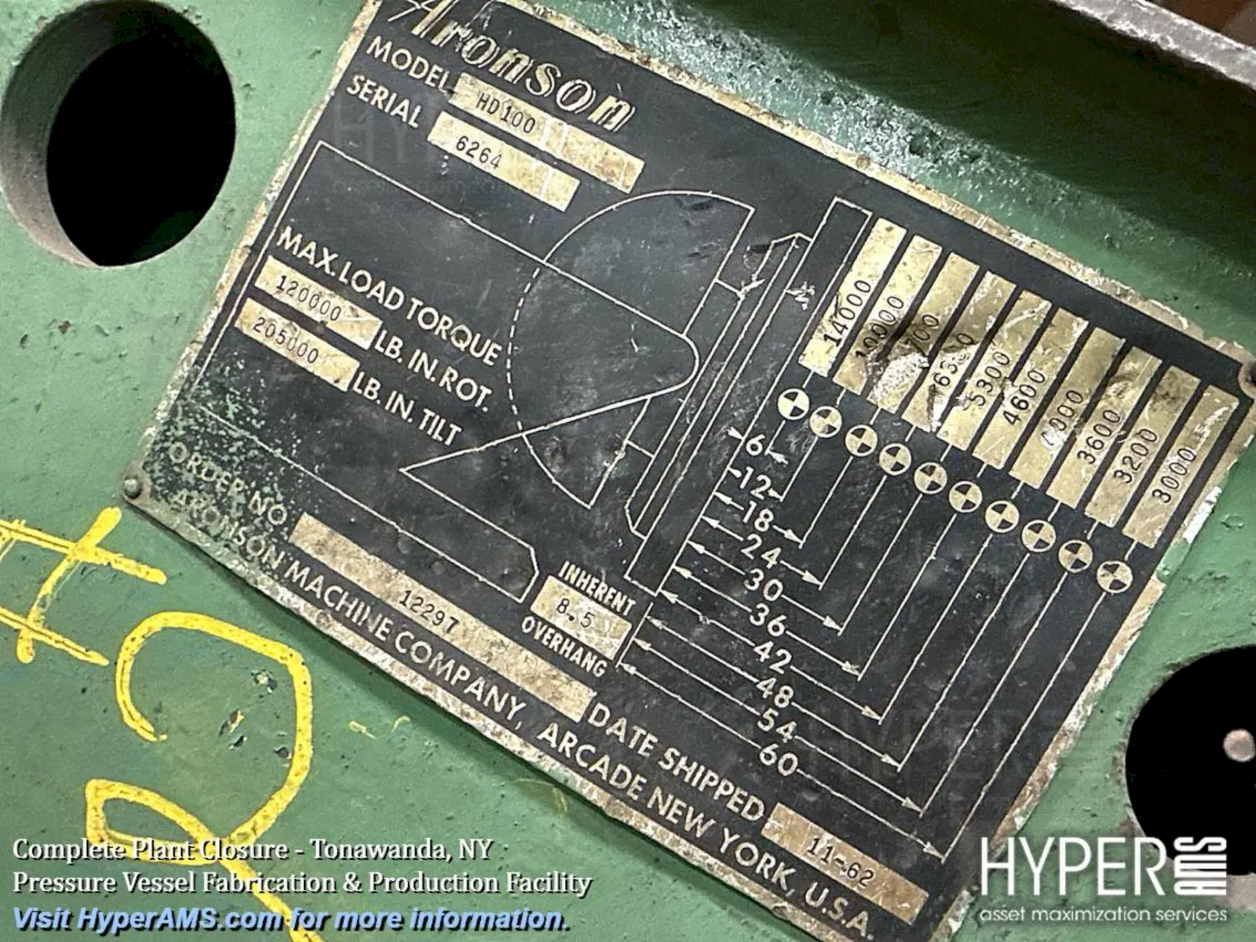 TABLE ..................... 60" X 60" ROTATIONAL TORQUE ......... 120,000 LBS