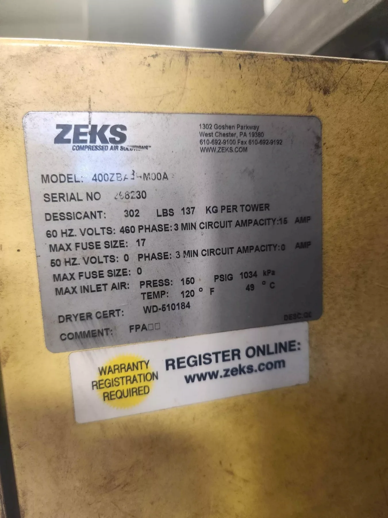 Similar Listings to - ZEKS MODEL #400ZBA34MODA AIR DRYER: YOBRO #25150