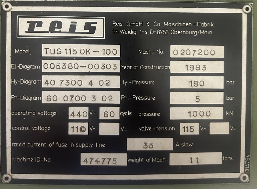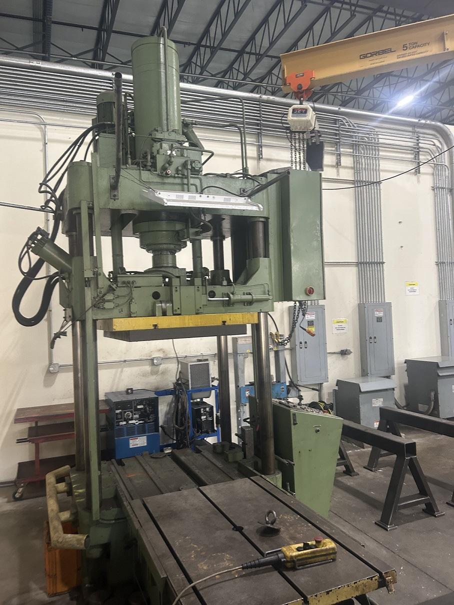 NEW 1983 CAPCITY 112 TON MODEL TUS 115-OK-100 FLIP OUT UPPER PLATTEN SLIDE OUT BOLSTER T SLOTS RAM AND BOLSTER 4 POST HYDRUALIC |