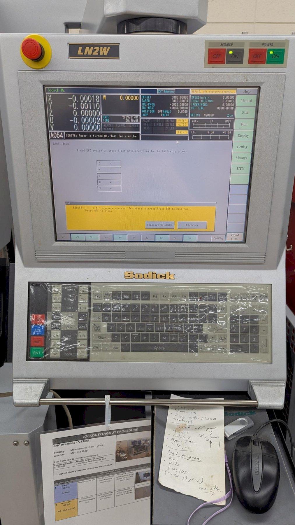 View Auction Item at: https://www.machinesused.com/lots/50390">, Lot 110: Sodick VZ300L CNC Wire EDM Electrical Discharge Machine, LN2W Control, Auto Wire Threader Equipped With: LN2W CNC Control, Auto Wire Threader, Dielectric System with Chiller, Remote Control Pendant, Spent Wire Crimper and Basket, Shippping Brackets, Control Manuals NOTE: Machine will require Service Tech to Install Brackets and Disconnect Wiring from Machine to Dielectric System to Prep for Shipment. Description: The Sodick VZ300L CNC Wire EDM is a high‑precision wire electrical discharge machining system engineered for exceptional accuracy, surface finish, and thermal stability. Featuring Sodick’s advanced linear motor drive technology, the VZ300L delivers consistent performance for demanding, tight‑tolerance applications. This model is widely used in toolrooms and production environments requiring reliable precision cutting of hardened materials. MachinesUsed.com specializes in buying, selling, appraising, consigning, and auctioning used Sodick VZ300L wire EDM machines. Electrics: 200 Volts, 3 Phase Manufacturer: Sodick EDM Model: VZ300L Year: 2013 Serial Number: T0496 Main Unit Approx Weight: 5280.00 lbs Main Unit Dimensions (in inches): Length: 62.00" Width: 79.00" Height: 78.00" Components: Dielectric System and Chiller: Length: 30.00" Width: 76.00" Height: 72.00" Spent Wire Bin: Length: 22.00" Width: 20.00" Height: 29.00" Specs: Control: Sodick LN2W CNC Control and Generator Max Workpiece Size: 30.7" x 22.44" x 8.46" Travels (X,Y,Z): 13.78" x 9.84" x 8.66" UV Travels: 3.15" x 3.15" Taper Angle: +/- 15 Degrees Max Workpiece Weight: 1,100 Lbs. Wire Diameter: .15 - .3mm (.006 - .012") Wire Speed: 420mm/second Max / 16.54 IPS Max Dielectric Fluid Capacity: 550 liters Wire Bobbin Weight Cap: 17.6 Lbs. Seller Company: Pine Technical College Seller Contact: Darren Lund Phone: (320) 629-4562 Item Location: Pine Technical College, 900 4th Street S. E., Pine City, MN 55063 Location Contact: Todd Swanson Phone: (320) 629-4507 Inspection Date & Time: By Appointment Normal Business Hours Monday-Friday Dock Door: 110"w x 119"H Loading Dock: Ground Level, Paved Lot Removal Dates and Times: This item must be removed between Tuesday, April 28, 2026 and Friday, May 8, 2026 |