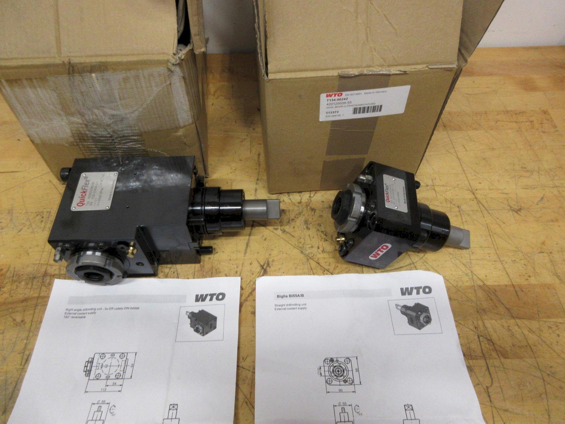 View Auction Item at: https://www.machinesused.com/lots/50372">, Lot 403: WTO QuickFlex Live Tool Holders for Eurotech Biglia T3, (1ea) Radial and Axial ER25 Collet Type, ***NEW IN BOXES** Description: (1) 420125039-55 Straight Drill, ER25 Collet Type, (1) 420525095-55 Right Angle, ER25 Collet Type Manufacturer: WTO Model: QuickFlex Main Unit Approx Weight: 0.00 lbs Main Unit Dimensions (in inches): Length: 0.00" Width: 0.00" Height: 0.00" Specs: Seller Company: Manufacturing Partners Inc Seller Contact: Machinesused.com April Multishop Phone: (763) 745-1166 Item Location: Machinesused.com, 2410 Niagara Lane N., Plymouth, MN 55447 Location Contact: Machinesused.com April Multishop Phone: (763) 745-1166 Inspection Date & Time: By Appointment Normal Business Hours Monday-Friday Dock Door: 14' x 14' Ground Level Door, Paved Lot Loading Dock: 8' x 8' Truck Level Door Removal Dates and Times: This item must be removed between Tuesday, April 28, 2026 and Friday, May 8, 2026 |