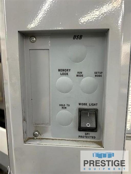 Table size 52" x 18" Max table load 1,750 lbs X axis travel 50" Y axis travel 20" Z axis travel 25" Spindle taper BT #40 Spindle speed 12,000 RPM Spindle motor 30 HP - Direct Drive Spindle nose to table top 4.2" - 29.2" Number of tool positions 24 + 1 Position Side Mount Max tool weight 12 lbs. Rapid feed rate (x,y,z 1,400 IPM Cutting feed rate 0.1 - 833 IPM Machine dimensions 152" x 99" x 106" Machine weight (approximately) 13,800 lbs. Equipped With: HAAS CNC Controls 24 Station Side Mounted Tool Changer 4th Axis Drive & Wiring Haas HRT210 4th Axis Rotary Table Programmable Coolant Nozzle Rigid Tapping Coolant Tank with Pump Inline Direct Drive 12,000 RPM Spindle RS 232C Port Interface for DNC Operation All Available Manuals Wired 208/230V Electrics Some BT40 Tool Holders Machine Motion Hours: 18,951 Spindle Run Hours: 19,504 |