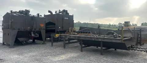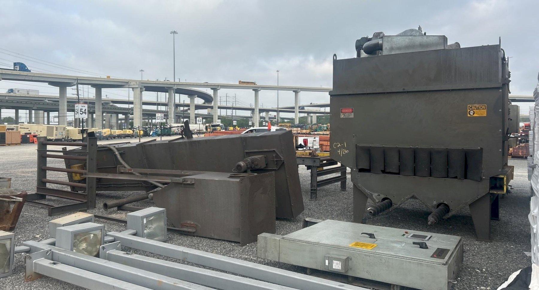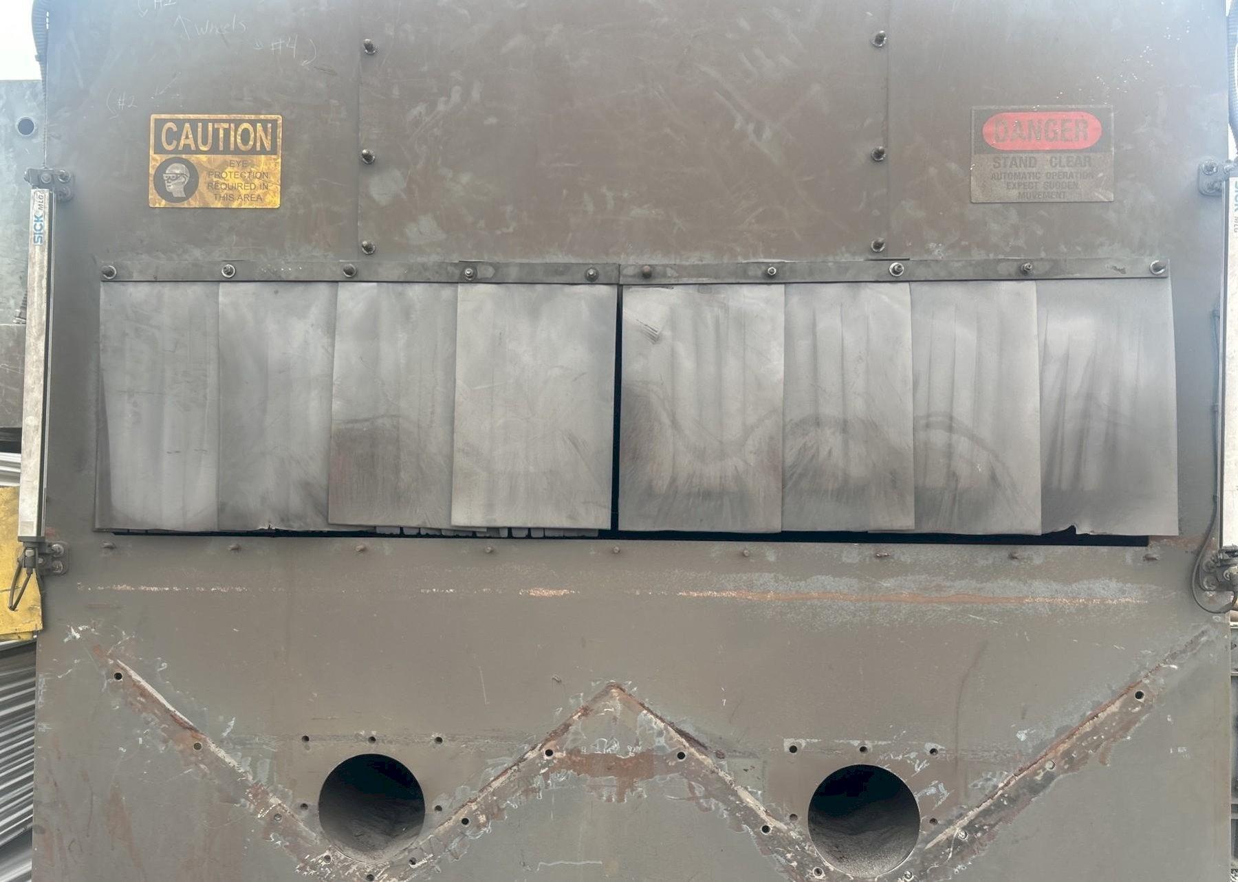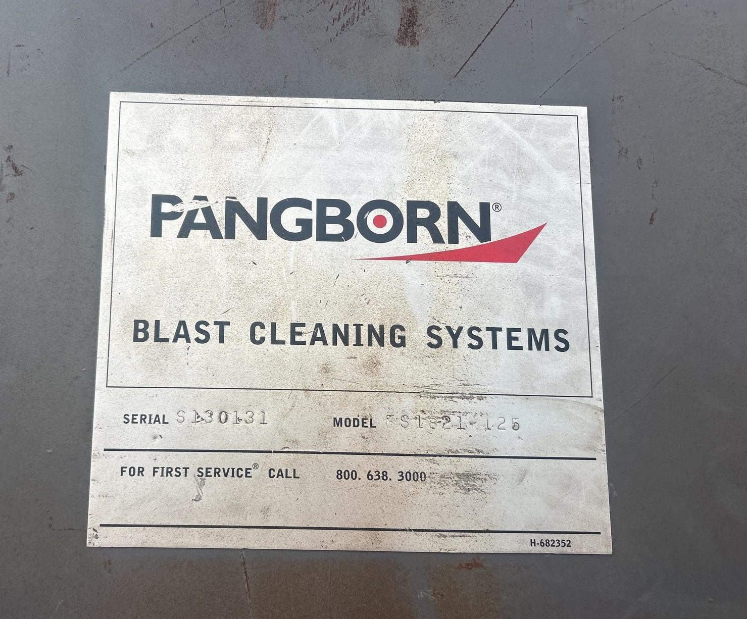 SERIAL ................... S130131 MODEL .................... ES-1821-125 WIDTH OF OPENING ......... 72" HEIGHT OF OPENING ........ 18" ROLLER CONVEYOR .......... POWERED NUMBER OF SHOT WHEELS .... 4 TOP & BOTTOM BLASTING .... YES WHEEL CONFIGURATION ...... 2 TOP / 2 BOTTOM WHEEL MOTORS ............. 25 HP EACH MEDIA RECLAIM SYSTEM: BLOW OFF STATION ......... YES BLOW OFF AIR NOZZLES ..... 10 ROTARY BRUSH STATION ..... YES, 5 HP POWERED RECLAIM AUGERS ... YES ELEVATOR BUCKET SYSTEM ... YES EXIT CONVEYOR WITH RECLAIM: LENGTH ................... 20' POWERED ROLLERS ......... YES ROLLER DIAMETER .......... 3-1/2" ROLLER CENTERS ........... 12" POWERED RECLAIM AUGERS ... YES PANGBORN DUST COLLECTOR |