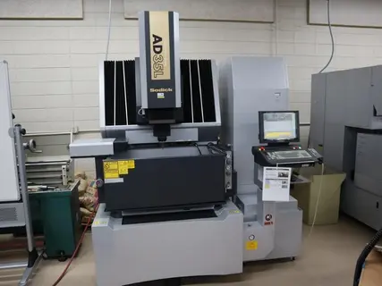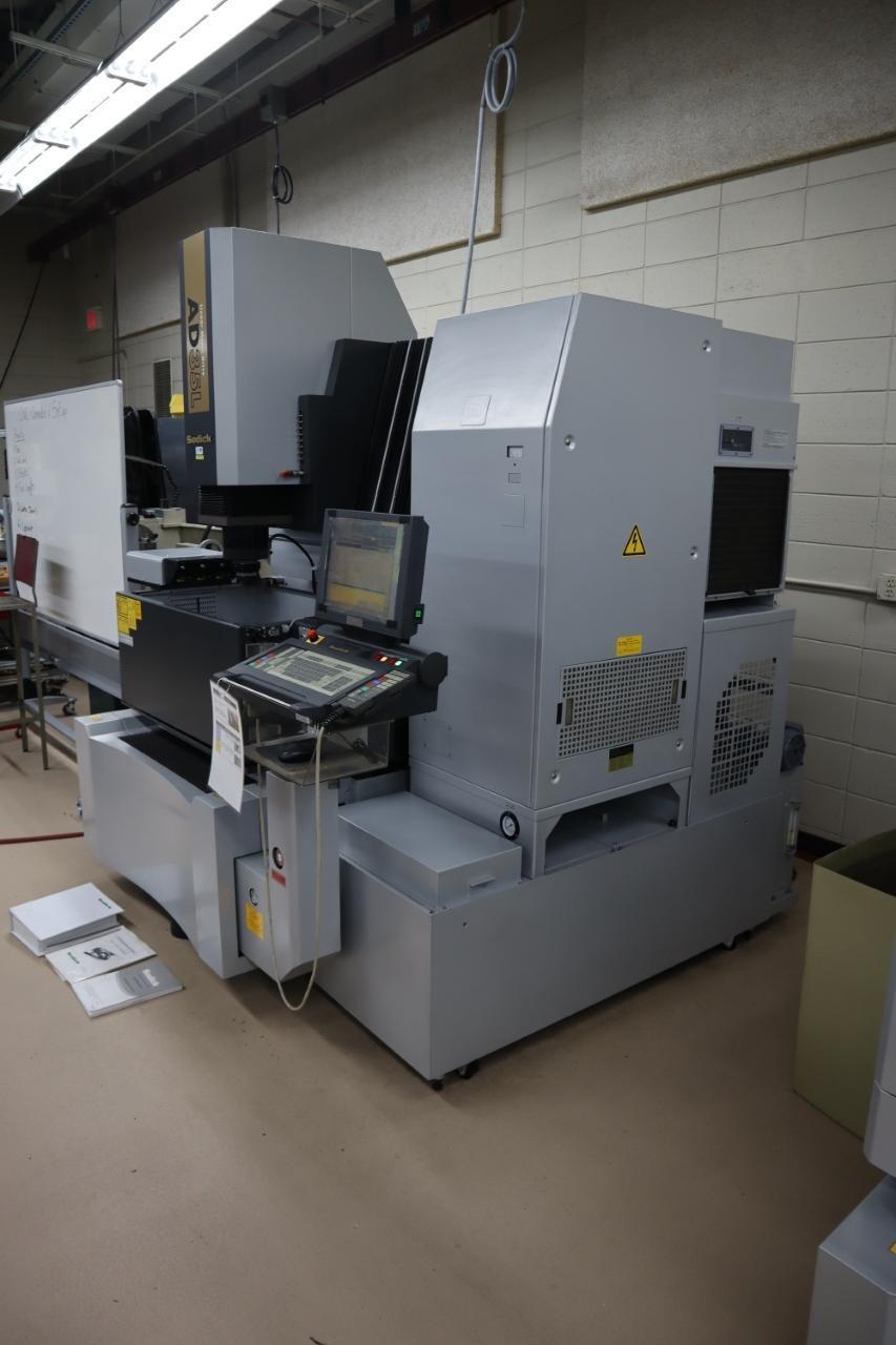 View Auction Item at: https://www.machinesused.com/lots/50391">, Lot 100: Sodick AD35L CNC EDM Sinker Electrical Discharge Machine, 4 Electrode Changer, Sytem 3R Head, LN2 Control, C (U) Axis Equipped With: Sodick LN2 CNC Control, Linear Drive Motors, System 3R Head, 4 Statio Electrode Changer, U-Axis (C) Programmable, Dielectric System with Chiller, Remote Control Pendant, Machine and Control Manuals, System Disk, Assorted Tooling and accessories, Shipping Brackets have been installed on this machine. NOTE: Requires service tech to disconnnect wiring from Machine to Dielectric system. Description: The Sodick AD35L CNC EDM Sinker is a high‑precision die‑sinker EDM machine designed for demanding mold, die, and precision tooling applications. Built with Sodick’s advanced linear motor technology, the AD35L delivers exceptional accuracy, surface finish quality, and long‑term thermal stability. Manufacturers rely on the Sodick AD35L for consistent performance in tight‑tolerance environments where repeatability and reliability are critical. MachinesUsed.com specializes in buying, selling, appraising, consigning, and auctioning used Sodick AD35L EDM sinkers worldwide. Electrics: 200 V, 3 Phase Manufacturer: Sodick EDM Model: AD35L Year: 2014 Serial Number: t0052 Main Unit Approx Weight: 7100.00 lbs Main Unit Dimensions (in inches): Length: 85.00" Width: 82.00" Height: 94.00" Components: Dielectric System: Length: 34.00" Width: 70.00" Height: 81.00" Specs: Control: Sodick LN2 CNC Control Tank Size: 38.39" x 21.85" x 13.78"H Table Size: 23.62" x 15.75" Max Table Load: 1,210 Lb / 550 kg Travels (X/Y/Z): 13.78" x 9.84" x 10.63" Spindle C-Axis Positioning: U-Axis Programmable (c) Generator Output: 40 Amps Tool Changer Capacity: 4 Station Electrode Changer Spindle / Head Tooling Type: System 3R Max Electrode Weight: 110 Lbs. Dielectric Reservoir Capacity: 400 Liters Work Tank Volume Capacity: 180 Liters Seller Company: Pine Technical College Seller Contact: Darren Lund Phone: (320) 629-4562 Item Location: Pine Technical College, 900 4th Street S. E., Pine City, MN 55063 Location Contact: Todd Swanson Phone: (320) 629-4507 Inspection Date & Time: By Appointment Normal Business Hours Monday-Friday Dock Door: 110"w x 119"H Loading Dock: Ground Level, Paved Lot Removal Dates and Times: This item must be removed between Tuesday, April 28, 2026 and Friday, May 8, 2026 |