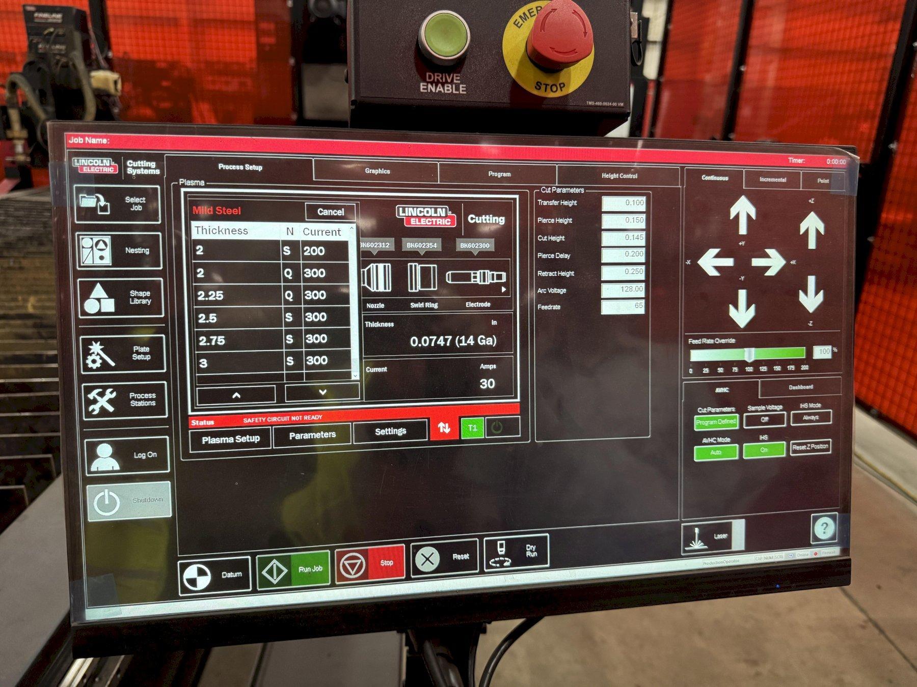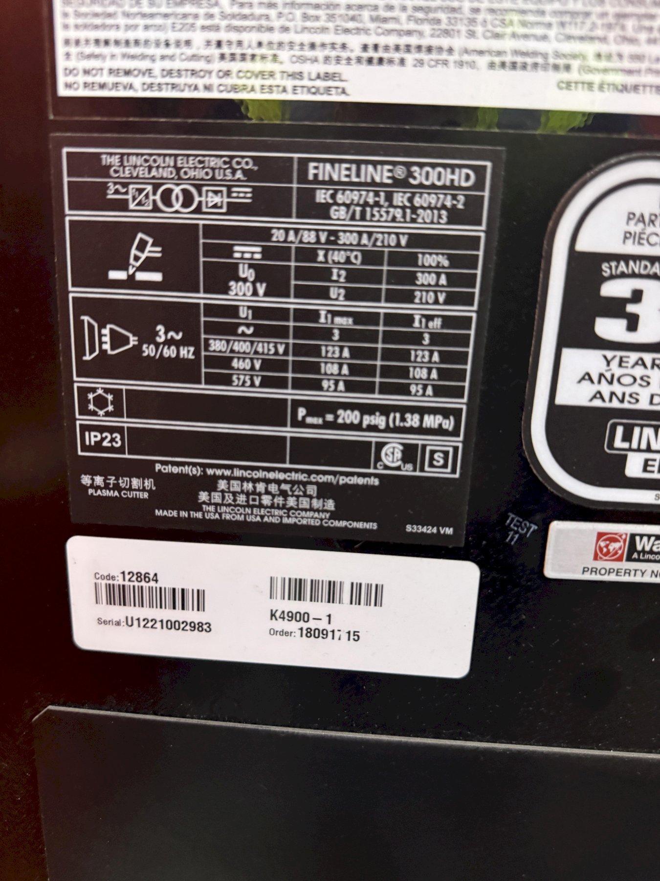 YEAR NEW .................................... 2023 MODEL ....................................... TORCHMATE 5100 TABLE CUTTING AREA .......................... 60" X 120" TRAVERSE SPEED .............................. 1500 IPM CUT SPEED ................................... UP TO 450 IPM PLATE CAPACITY .............................. HOLDS UP TO 4" X 5' X 10' MILD STEEL FINELINE 300 HD SERIAL ...................... U1221002983 CUTTING CAPACITY ............................ 3" PIERCE CAPACITY ............................. 1-3/4" OPERATING TEMPERATURE ....................... 32 TO 104 FAHRENHEIT ACCELERATION & DECELERATION RATE INLINE ..... 0.05G BEVEL 0.03G HEIGHT CONTROL .............................. 6" Z-AXIS TRAVEL FUME EXTRACTION ............................. PRISM CIRCULATOR CONDITION ................................... LIKE NEW, HARDLY USED, IN PLANT UNDER POWER |