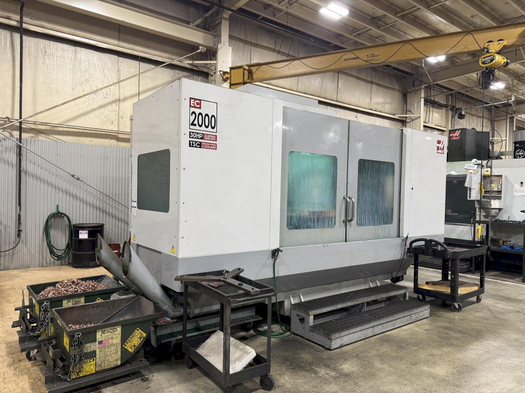SERIAL .............................. 2052583 MODEL ............................... EC-2000 MANUFACTURED ........................ 03/2008 SPINDLE SPEED ....................... 6,000 RPM X-AXIS TRAVEL ....................... 84" (2133.6 MM) Y-AXIS TRAVEL ....................... 40" (1016 MM) Z-AXIS TRAVEL ....................... 32" (812 MM) 4TH AXIS TABLE ...................... YES SPINDLE NOSE TO TABLE (~MIN) ........ 4" (102 MM) SPINDLE NOSE TO TABLE (~MAX) ........ 29" (737 MM) TABLE LENGTH ........................ 96" (2438.4 MM) TABLE WIDTH ......................... 36" (914.4 MM) MAX TABLE LOAD ...................... 10,000 LB (4535 KG) TAPER ............................... CT50 THROUGH-SPINDLE COOLANT ............. YES CHIP CONVEYOR ....................... YES MAIN MOTOR .......................... 30 HORSEPOWER MILL MACHINED ....................... COPPER ONLY |