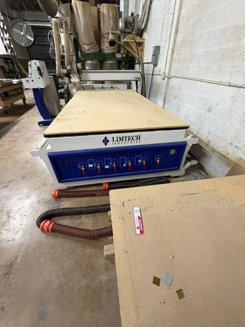 This 2018 Limtech Industries Centaurus C510D CNC router features a 5′ x 10′ table, 12 HP HSD high-speed spindle, Syntec CNC control, and automatic tool changing for production routing applications. Built for woodworking, plastics, composites, cabinetry, closets, signs, and nested-base manufacturing, this machine is equipped with a Dust Tech collection system for cleaner shop operation.