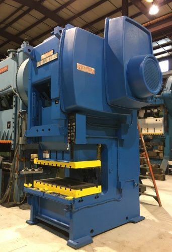 Standard Specifications 200 ton Capacity 10" Stroke 24" Shut Height 6" Adjustment 60" LR x 30" FB Bed Area 60" LR x 30" FB Slide Area 30 SPM Equipment and Features Air Clutch and Brake Air Counterbalances Recirculating Lube System T-Slotted Ram and Bolster Motorized Adjustment Motors and Controls Floor Standing Can be seen under power! |